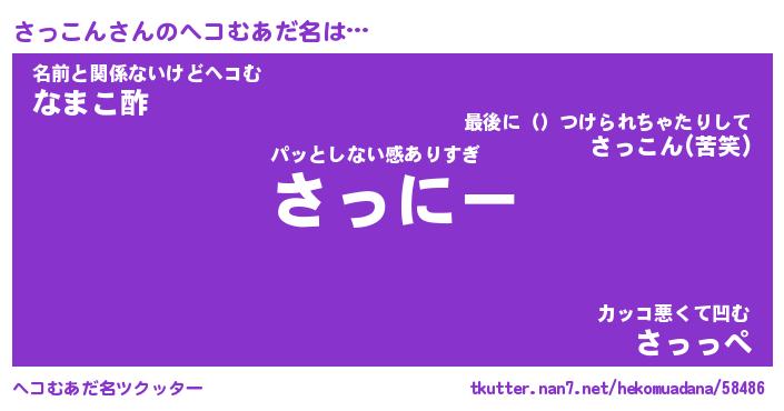 | 意味不明あだ名 | 『ペロリンさっこん』『永久保存さっこん』 |