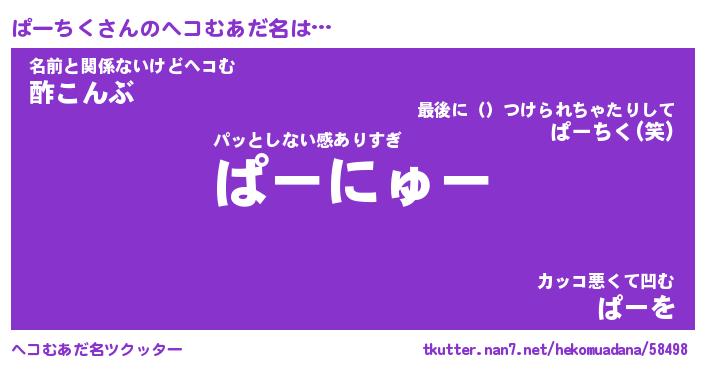 | 意味不明あだ名 | 『ペロリンぱーちく』『永久保存ぱーちく』 |