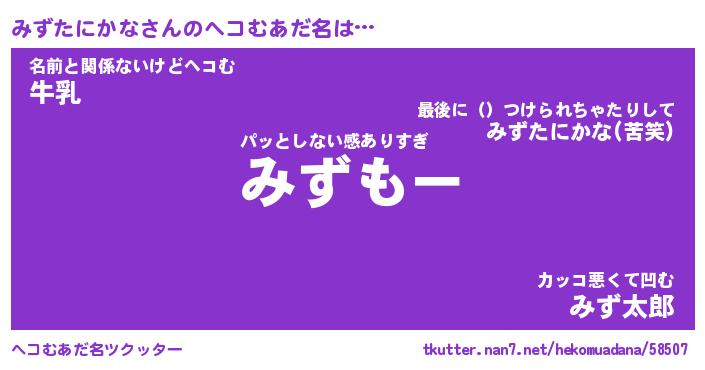 | ヒーロー風カッコイイあだ名 | 『スーパーミズタニカナ』『炎刃騎士ミズ』 |