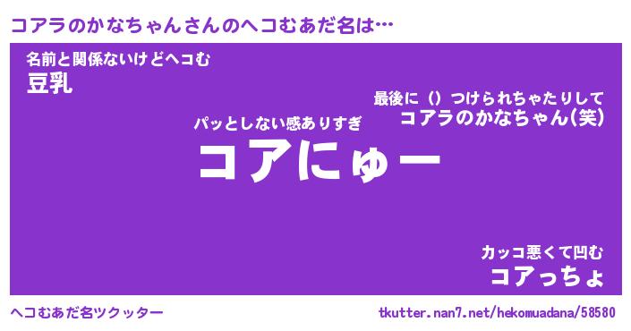 | 2回繰り返すあだ名 | 『コアコア』『ココアア』『ぬらぬら』 |