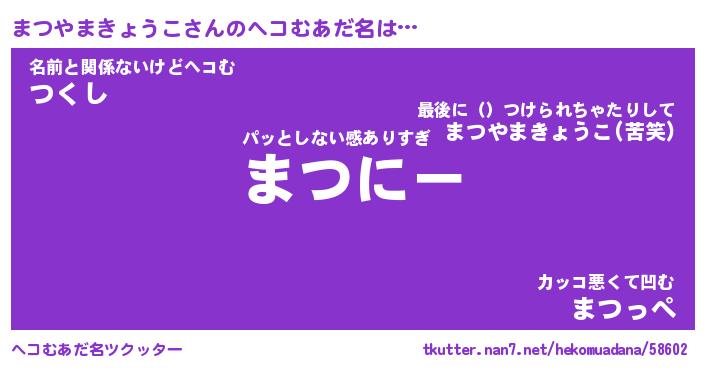 | 欧米人風あだ名 | 『マイケルまつやまきょうこ』 |