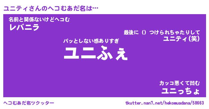 | ヒーロー風カッコイイあだ名 | 『スーパーユニティ』『銀牙騎士ユニ』 |