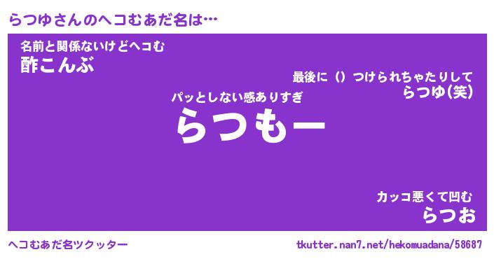 | ファンタジー風あだ名 | 『ラツフェル』『エターナルラツユー』 |