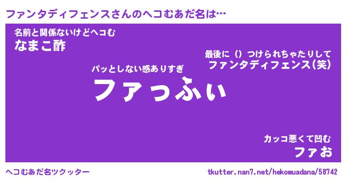 | 男性向けラノベタイトル風あだ名 | 『ファンタディフェンスの憂鬱』 |