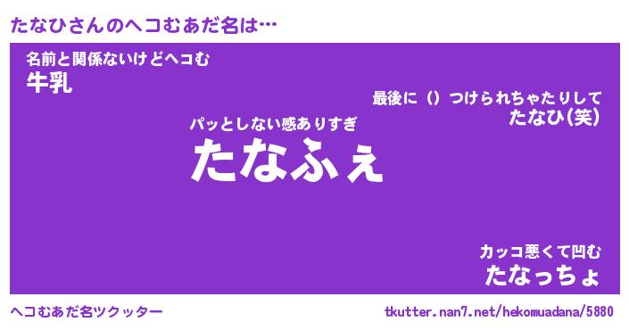 | ポケモン風あだ名 | 『タナチュウ』『タナヒダネ』 |