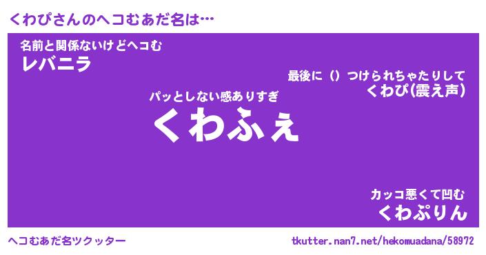| ヒーロー風カッコイイあだ名 | 『スーパークワピ』『ウルトラくわぴマン』 |