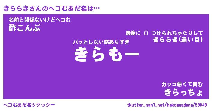 | 意味不明あだ名 | 『ペロリンきららき』『永久保存きららき』 |