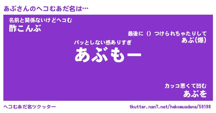 | ポケモン風あだ名 | 『アブチュウ』『アブダネ』『ヒアブ』 |