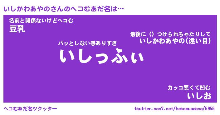 | 恥ずかしいあだ名 | 『プリティーいしかわあやの』『いしちん』 |