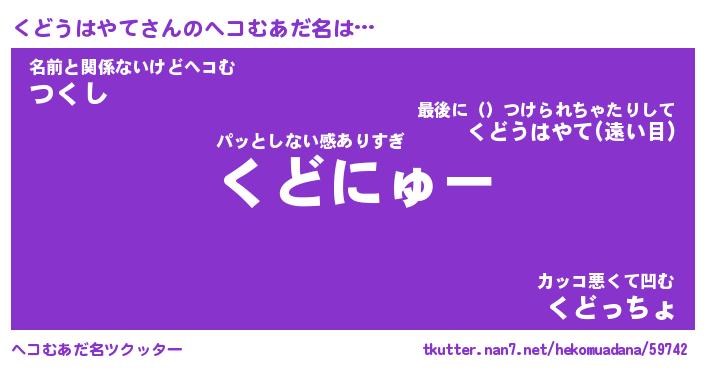| ヒーロー風カッコイイあだ名 | 『スーパークドウハヤテ』『暗黒騎士クド』 |