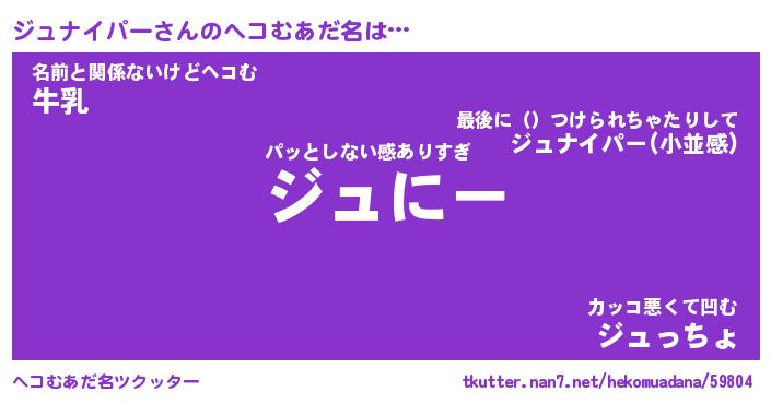 | 男性向けラノベタイトル風あだ名 | 『ジュナイパーの憂鬱』 |