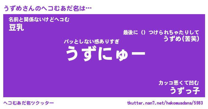 | 男性向けラノベタイトル風あだ名 | 『うずめの憂鬱』 |