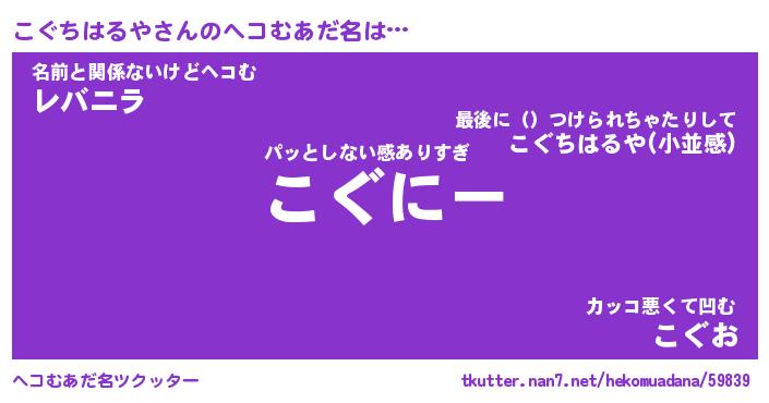 | 男性向けラノベタイトル風あだ名 | 『こぐちはるやの憂鬱』 |
