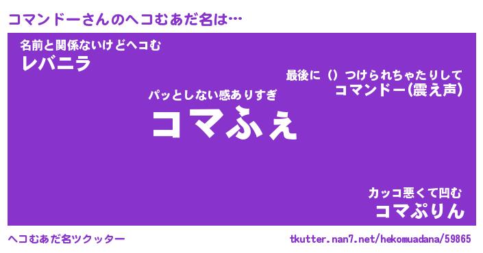 | ファンタジー風あだ名 | 『コマフェル』『エターナルコマンドーー』 |