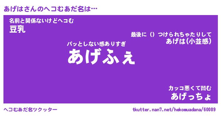 | 2回繰り返すあだ名 | 『あげあげ』『ああげげ』『ぷんぷん』 |