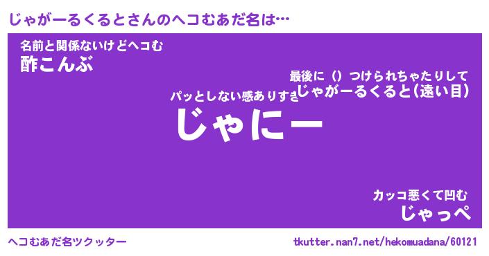 | 欧米人風あだ名 | 『マイケルじゃがーるくると』 |