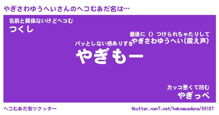 | 恥ずかしいあだ名 | 『プリティーやぎさわゆうへい』 |