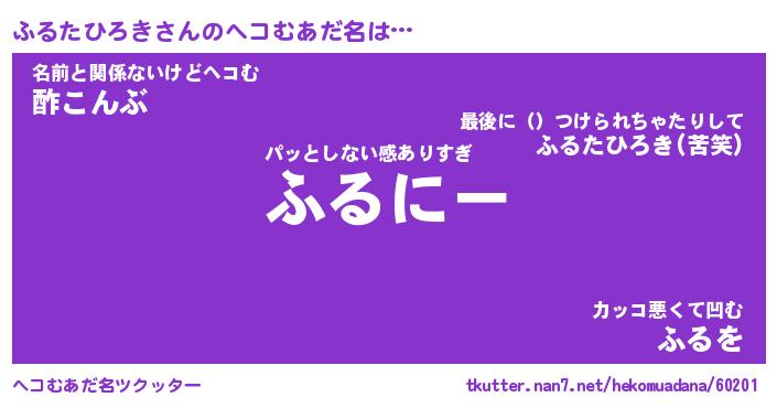 | ヒーロー風カッコイイあだ名 | 『スーパーフルタヒロキ』『天弓騎士フル』 |