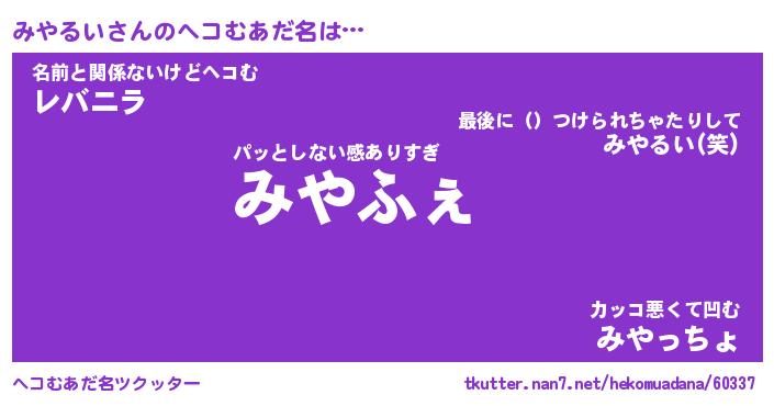 | 意味不明あだ名 | 『ペロリンみやるい』『永久保存みやるい』 |