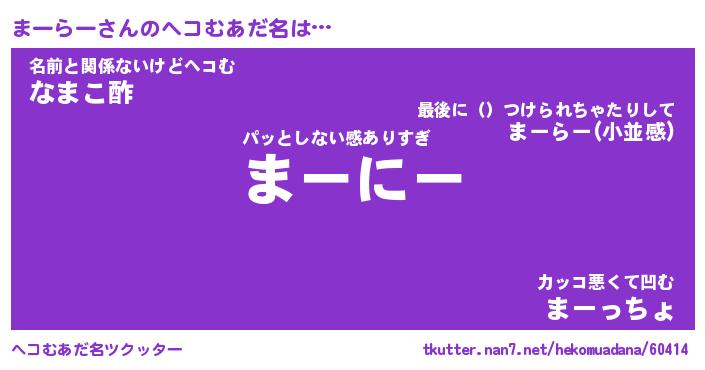 | 意味不明あだ名 | 『ペロリンまーらー』『永久保存まーらー』 |