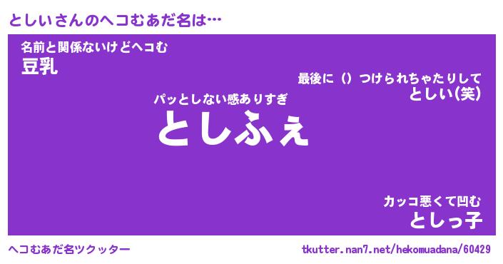 | ヒーロー風カッコイイあだ名 | 『スーパートシイ』『ウルトラとしいマン』 |