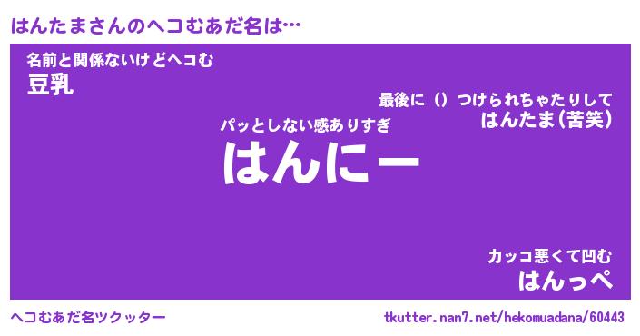 | 欧米人風あだ名 | 『マイケルはんたま』『ウサインはんたま』 |