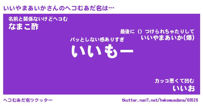 | 男性向けラノベタイトル風あだ名 | 『いいやまあいかの憂鬱』 |