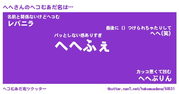 | ポケモン風あだ名 | 『ヘヘチュウ』『ヘヘダネ』『ヒヘヘ』 |