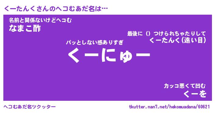 | 男性向けラノベタイトル風あだ名 | 『くーたんくの憂鬱』 |