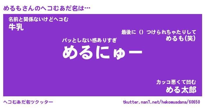 | 2回繰り返すあだ名 | 『めるめる』『めめるる』『うねうね』 |
