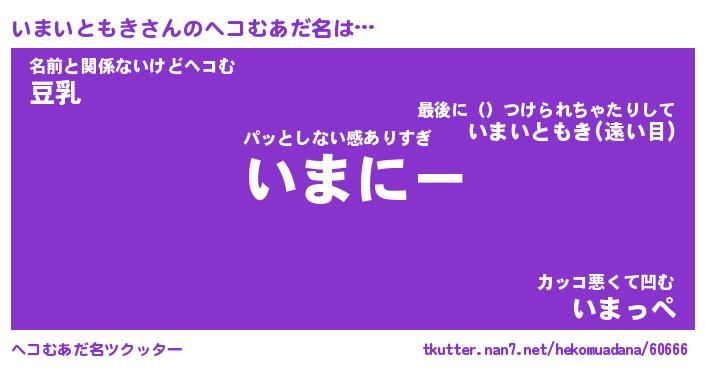 | 胡散臭い通販商品みたいなあだ名 | 『億万長者になれるブレスレット…その名も「いまいともき」』 |