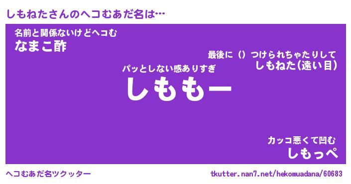 | 意味不明あだ名 | 『ペロリンしもねた』『永久保存しもねた』 |