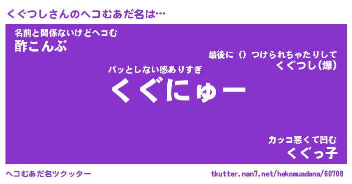 | 意味不明あだ名 | 『ペロリンくぐつし』『永久保存くぐつし』 |