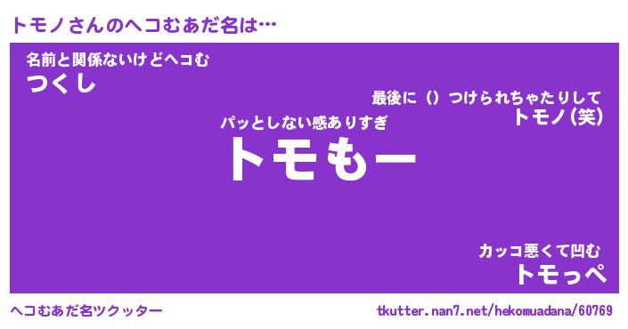 | ヒーロー風カッコイイあだ名 | 『スーパートモノ』『ウルトラトモノマン』 |