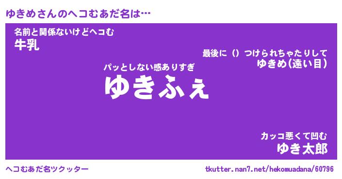 | 自動車の名前っぽいあだ名 | 『ユキティマ』『ユクア』『ユント』 |