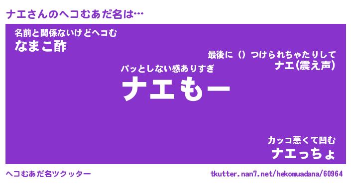 | 男性向けラノベタイトル風あだ名 | 『ナエの憂鬱』 |