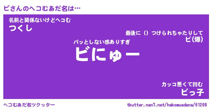 | ポケモン風あだ名 | 『ビチュウ』『ビダネ』『ヒビ』 |