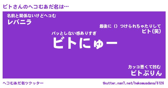 | ポケモン風あだ名 | 『ビトチュウ』『ビトダネ』『ヒビト』 |