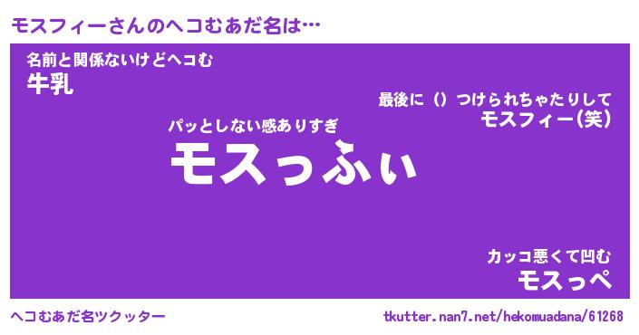| ファンタジー風あだ名 | 『モスフェル』『エターナルモスフィーー』 |