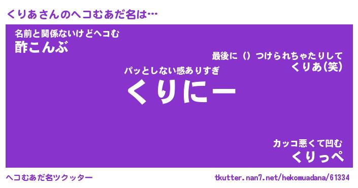 | 意味不明あだ名 | 『ペロリンくりあ』『くりあフォーエバー』 |