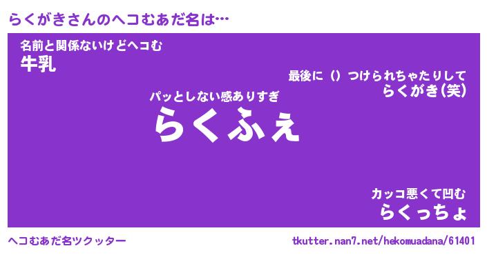 | ヒーロー風カッコイイあだ名 | 『スーパーラクガキ』『黄金騎士ラク』 |