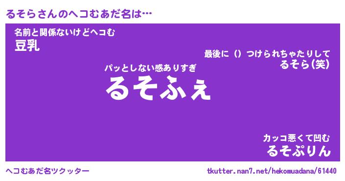 | 意味不明あだ名 | 『ペロリンるそら』『るそらフォーエバー』 |