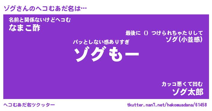 | 男性向けラノベタイトル風あだ名 | 『ゾグの憂鬱』『ノーゲーム・ノーゾグ』 |
