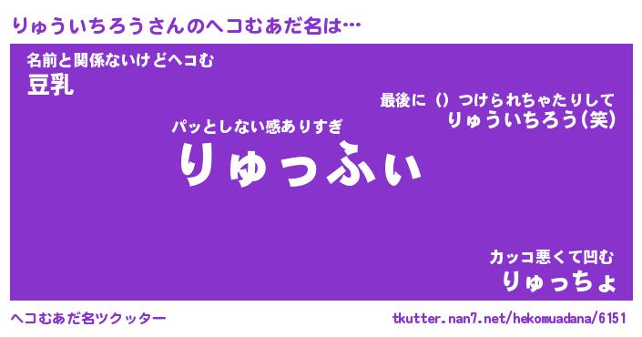 | 2回繰り返すあだ名 | 『りゅりゅ』『りりゅゅ』『げほげほ』 |