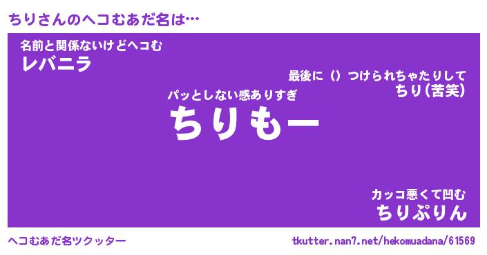 | 意味不明あだ名 | 『ペロリンちり』『ちりフォーエバー』 |