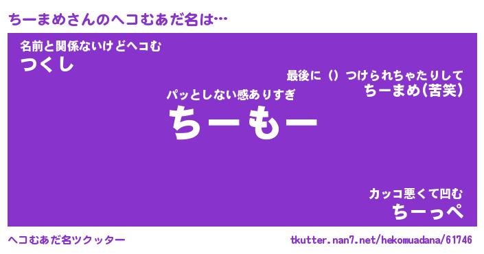 | 意味不明あだ名 | 『ペロリンちーまめ』『永久保存ちーまめ』 |