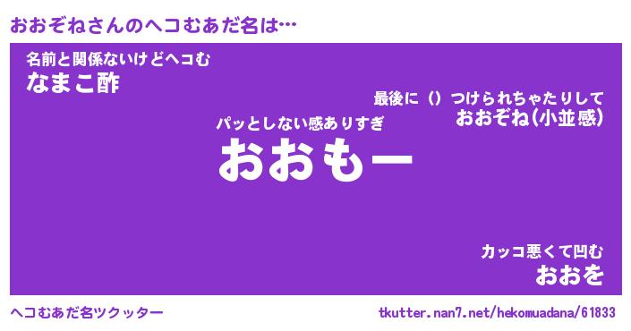 | 意味不明あだ名 | 『ペロリンおおぞね』『永久保存おおぞね』 |