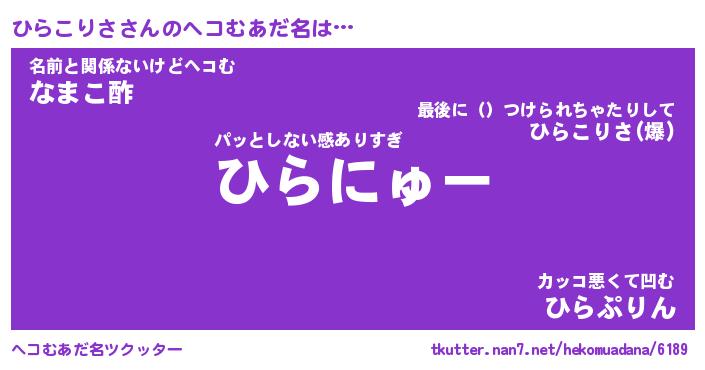 | ポケモン風あだ名 | 『ヒラチュウ』『ヒラコダネ』 |