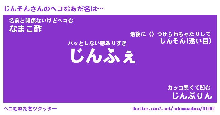 | ポケモン風あだ名 | 『ジンチュウ』『ジンソダネ』 |