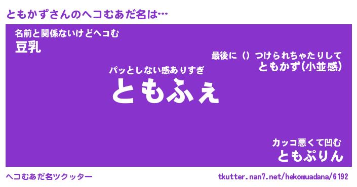 | 意味不明あだ名 | 『ペロリンともかず』『永久保存ともかず』 |